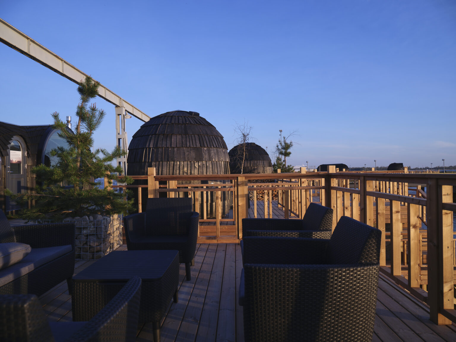 Iglusaunade alal on kokku viis sauna. Saunadest avaneb merevaade Tallinna lahele. Iglusaunades on lisaks leiliruumile avar eesruum, kus on istumiseks pingid ning madal laud toidu ja jookide serveerimiseks, lisaks sahtlid isiklike asjade hoidmiseks. Kõikide saunade ees on privaatne terrass välimööbli ja duširuumiga ning ligipääs supluskohale. Saunad on eelköetud.